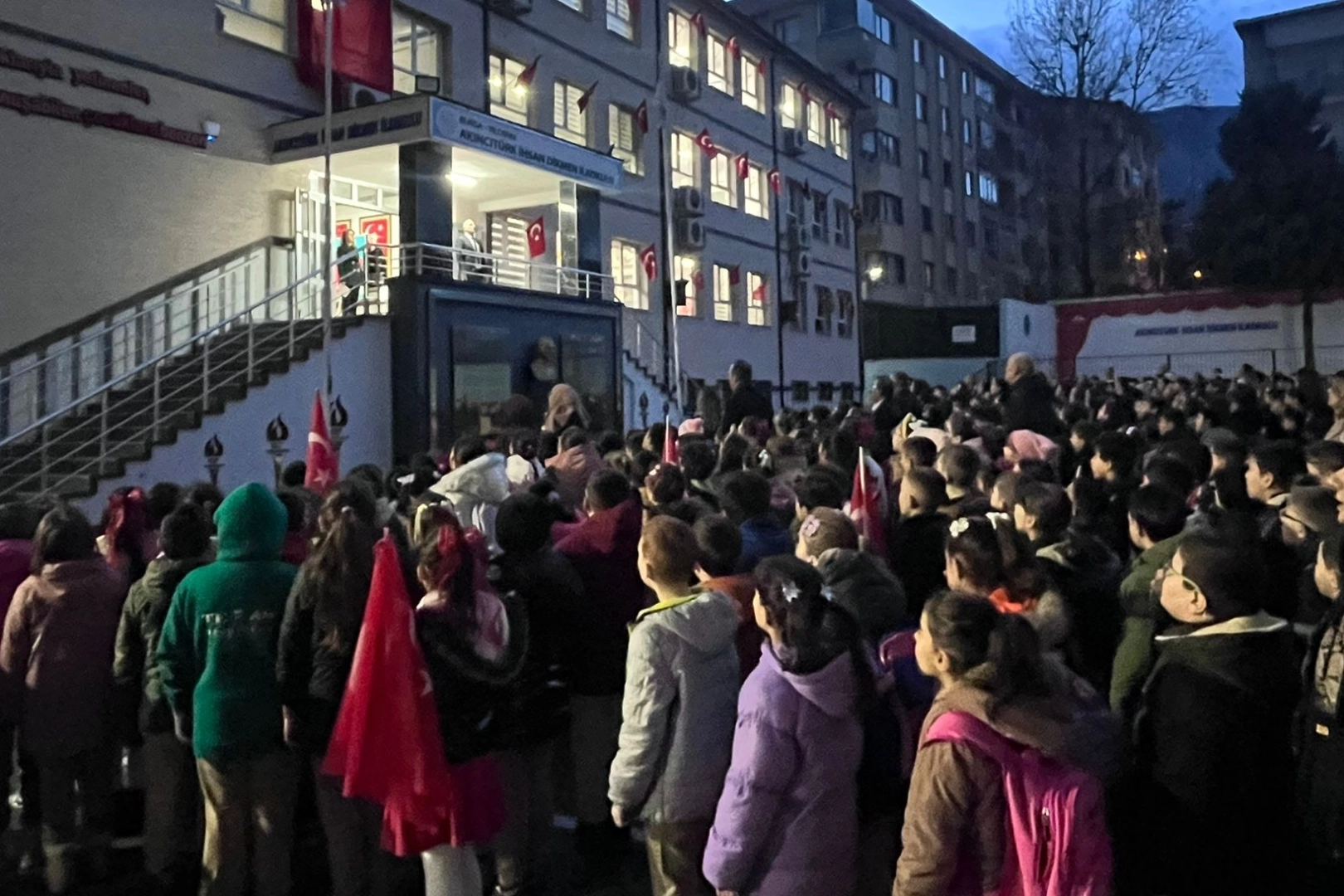 BURSA (İGFA) - Anma programına İl Millî Eğitim Müdürümüz Sayın Gürhan Çokgezer ile Yıldırım İlçe Millî Eğitim Müdürümüz Sayın Mustafa Sevinç katılım sağladı. Sabahın erken saatlerinde okul bahçesinde bir araya gelen öğretmenler ve öğrenciler; depremde hayatını kaybeden vatandaşlarımız için gerçekleştirilen saygı duruşunun ardından İstiklal Marşı’nı hep birlikte okuyarak birlik ve beraberlik duygularını pekiştirdi.