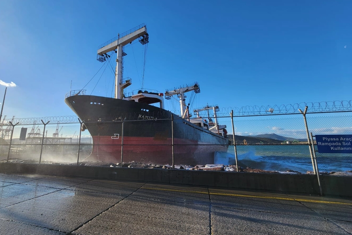 Denizcilik Genel Müdürlüğü, Ege Gübre Limanı’ndan olumsuz hava koşulları nedeniyle acil kalkış yapan HAMID-S adlı kuruyük gemisinin karaya oturduğunu, gemideki 18 denizcinin güvenli şekilde tahliye edildiğini açıkladı.